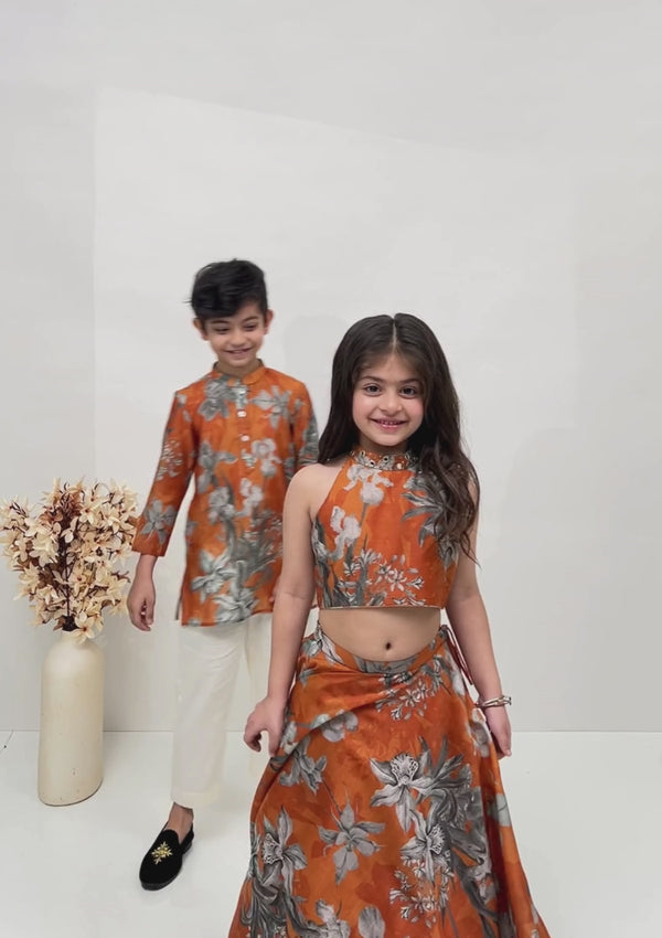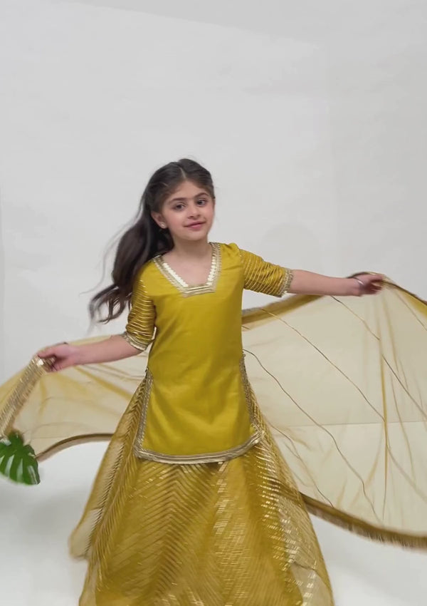 Raha Kapoor in Kids Sage Pintuck Embellished Kurta Set